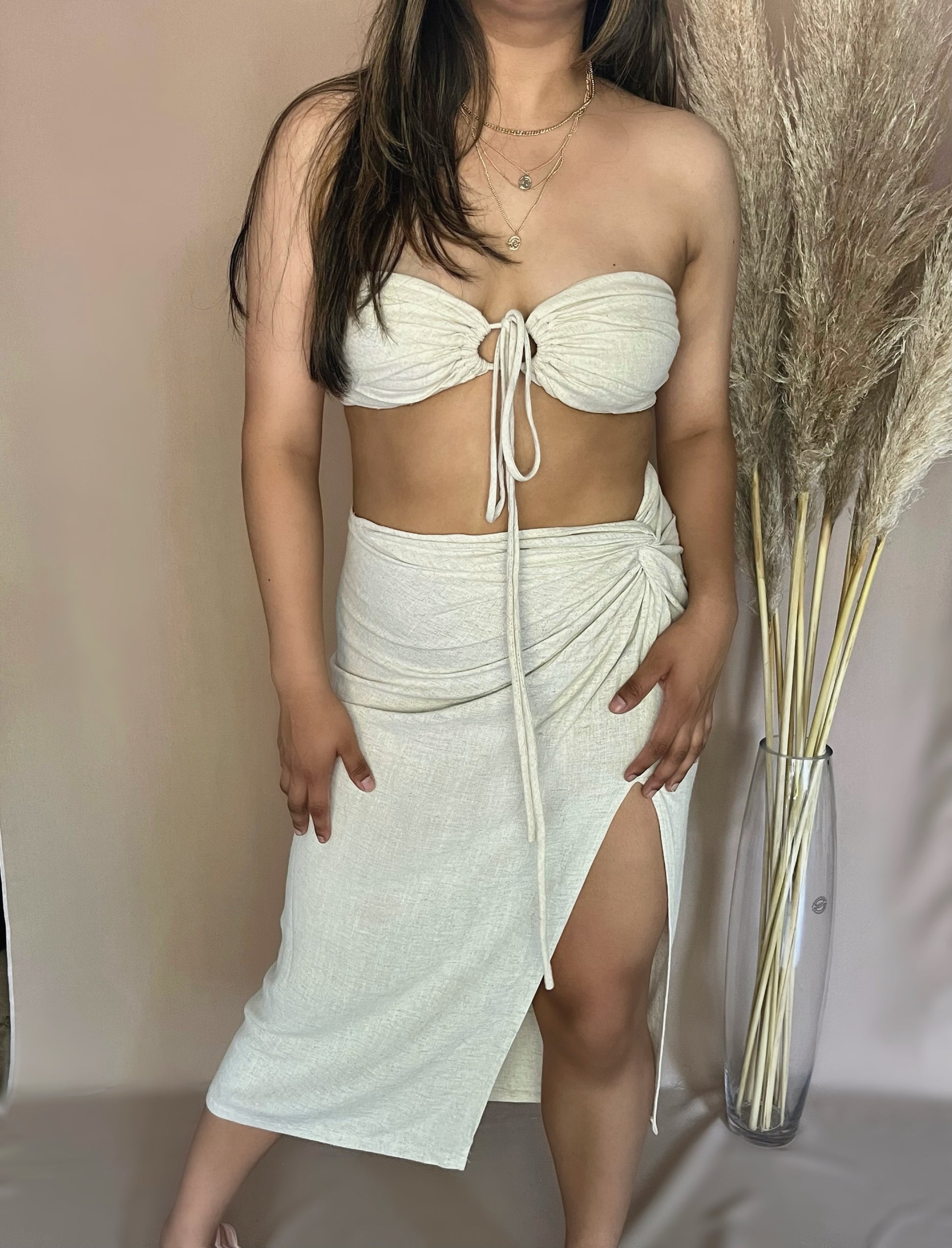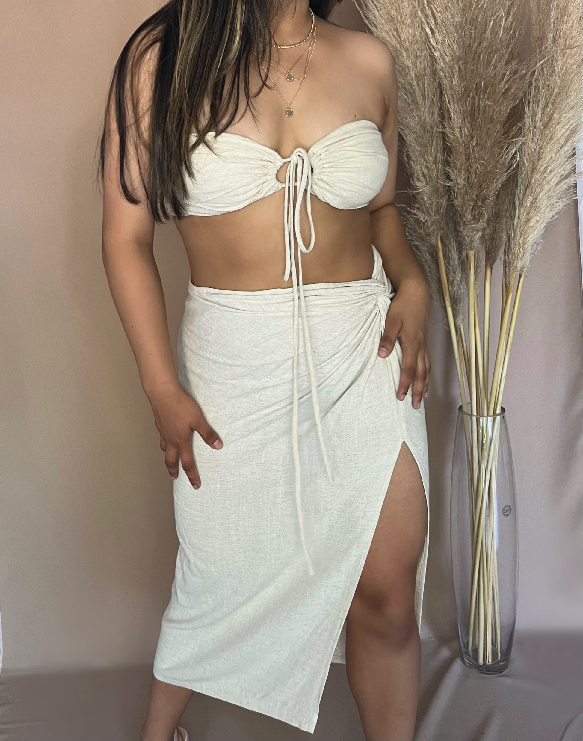 Top: Drawstring Front Halter Bralette Top with Ruched