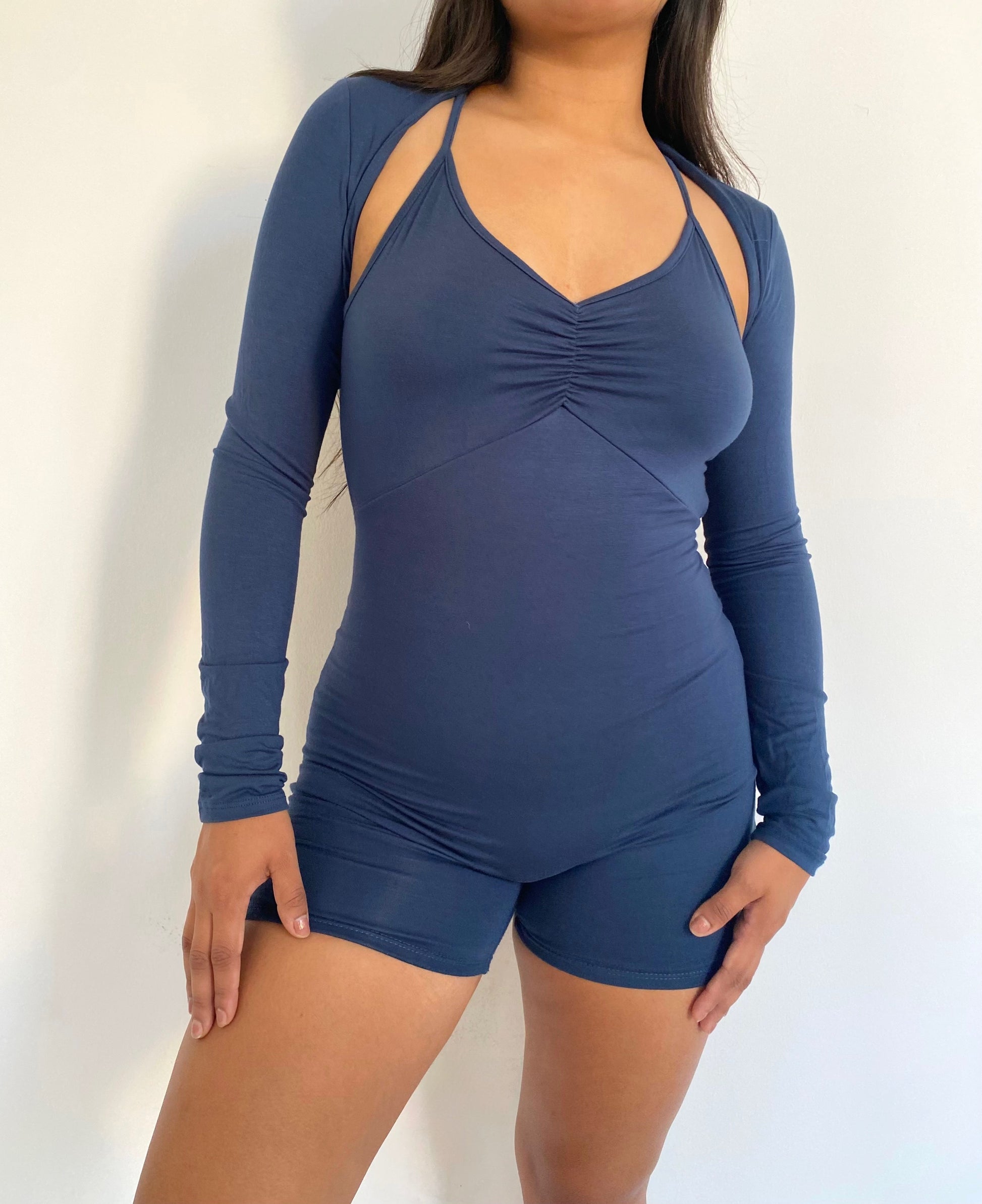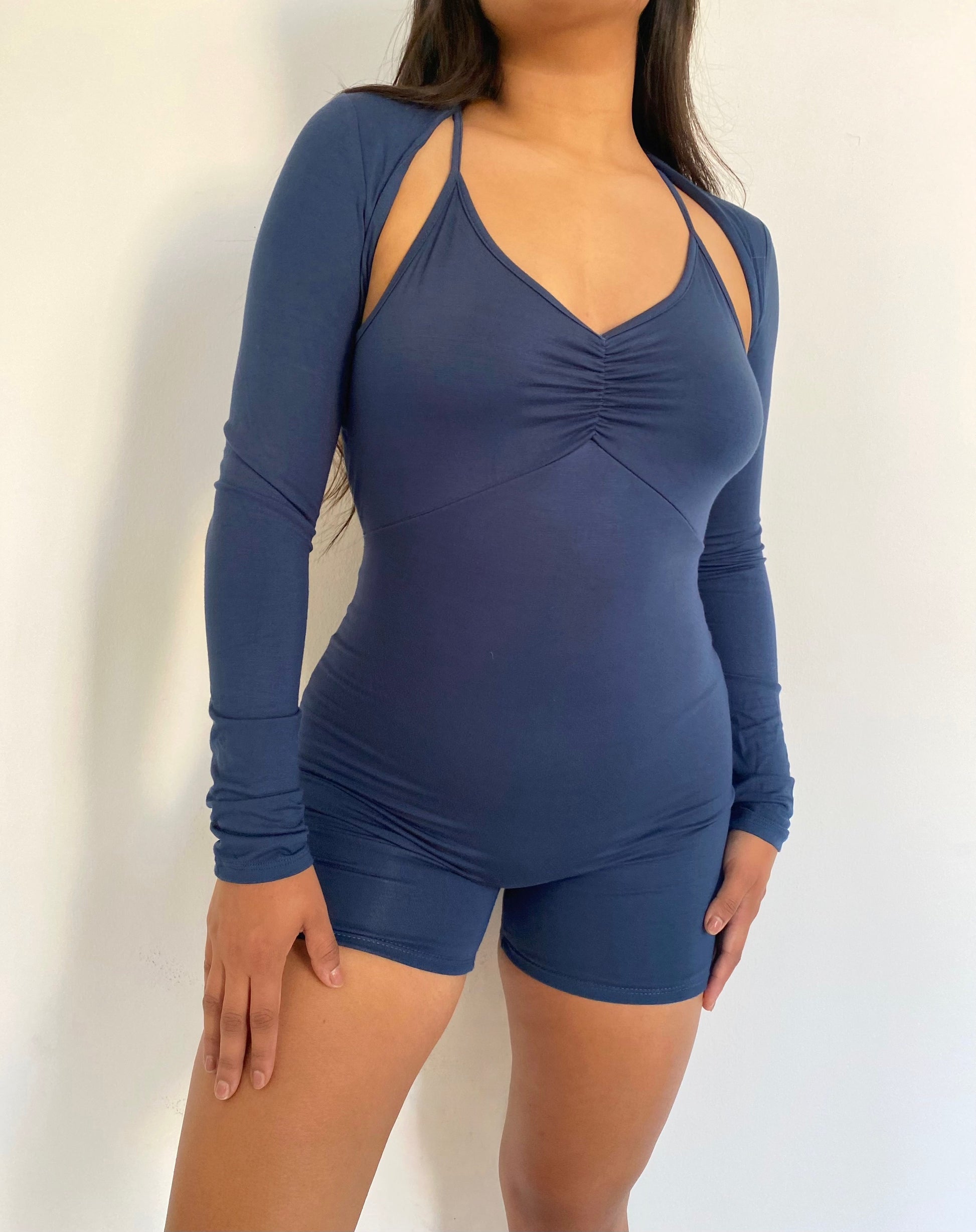 Beautiful Ruched Bust Detailed Romper with Bolero Set