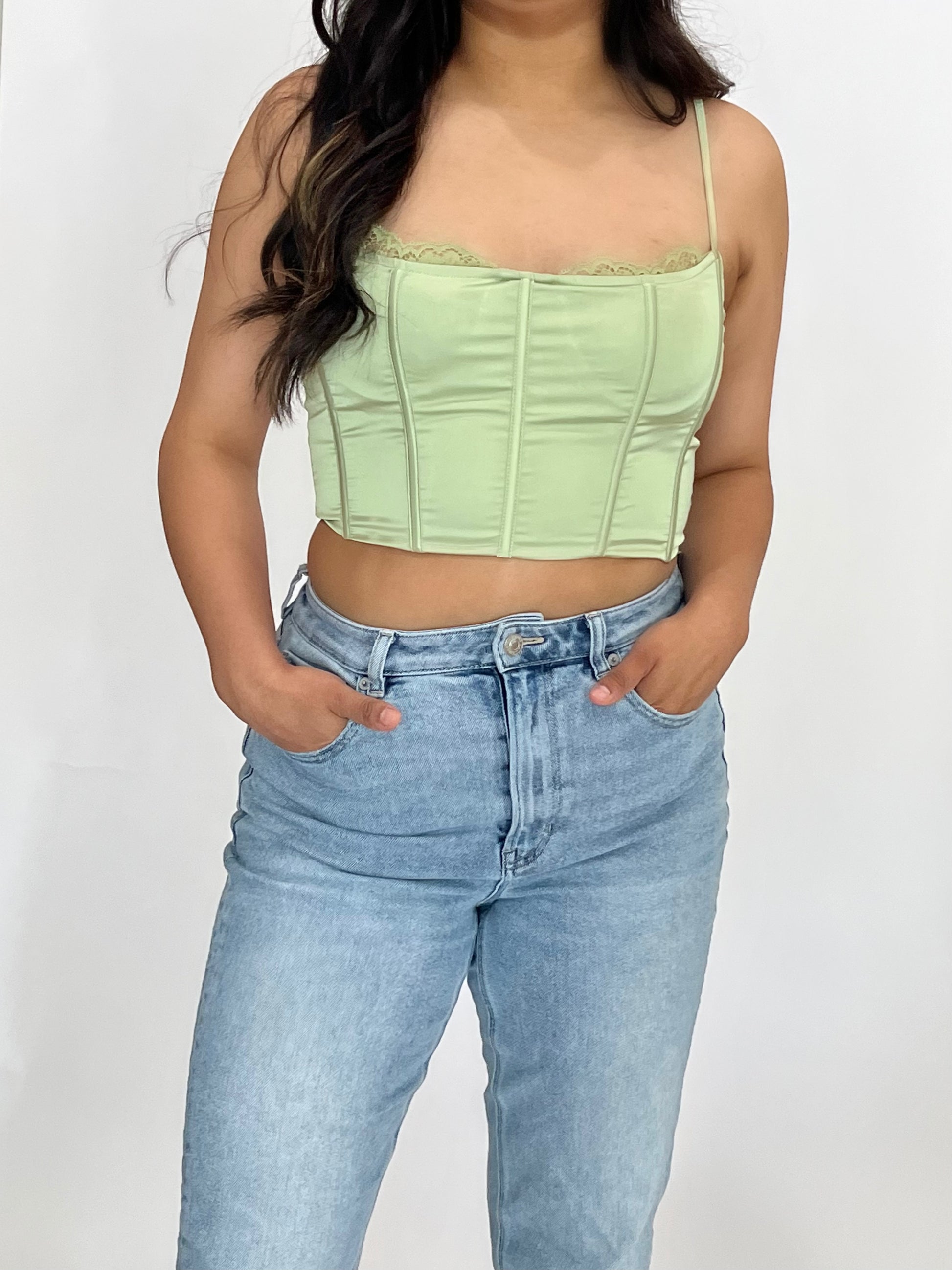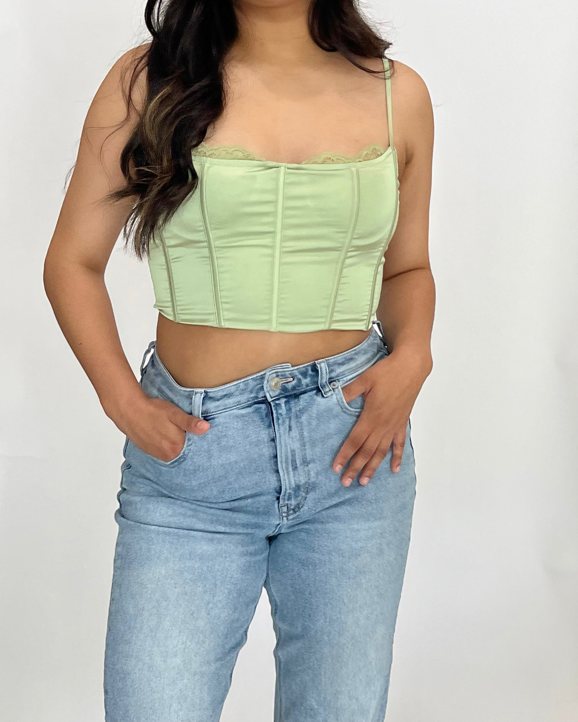 Beautiful Lace Detail Satin Corset Top